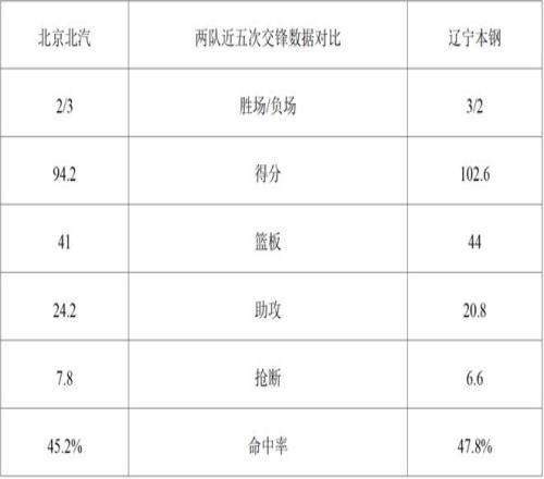 两队近五次交锋数据对比: